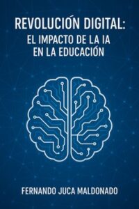 ✍️ “Crea una portada para un informe sobre Inteligencia Artificial. El título del informe es ‘Revolución digital: El impacto de la IA en la educación’. El trabajo está firmado por Fernando Juca, y debes incluir un dibujo de un cerebro digital con conexiones de datos en un fondo azul tecnológico.”