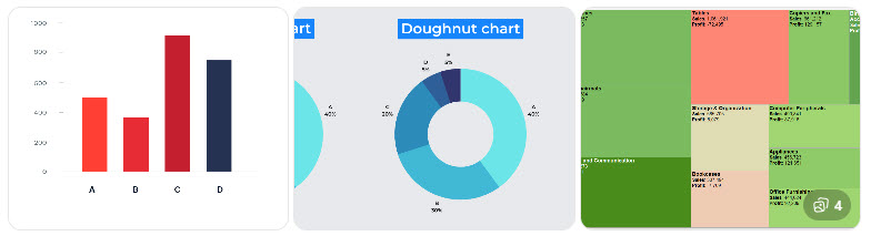 | Mapas de árbol (Treemap) | Representan datos jerárquicos mediante rectángulos proporcionales | Comparar partes de un todo |